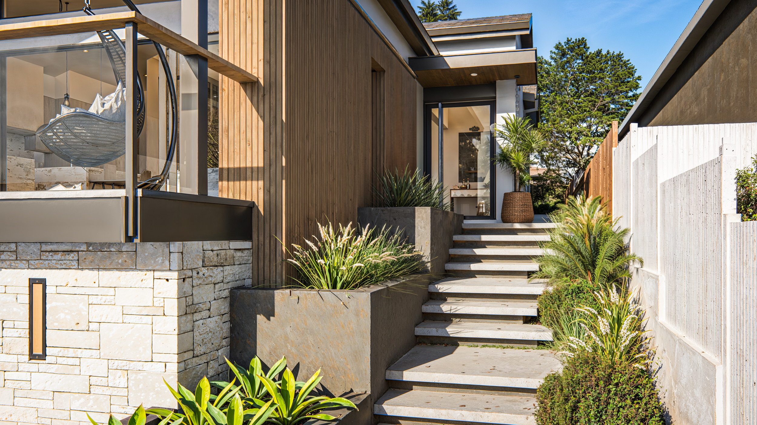 Walls of glass frame panoramic Pacific views, filling the interiors with natural light and reinforcing a seamless connection to the coastline.
